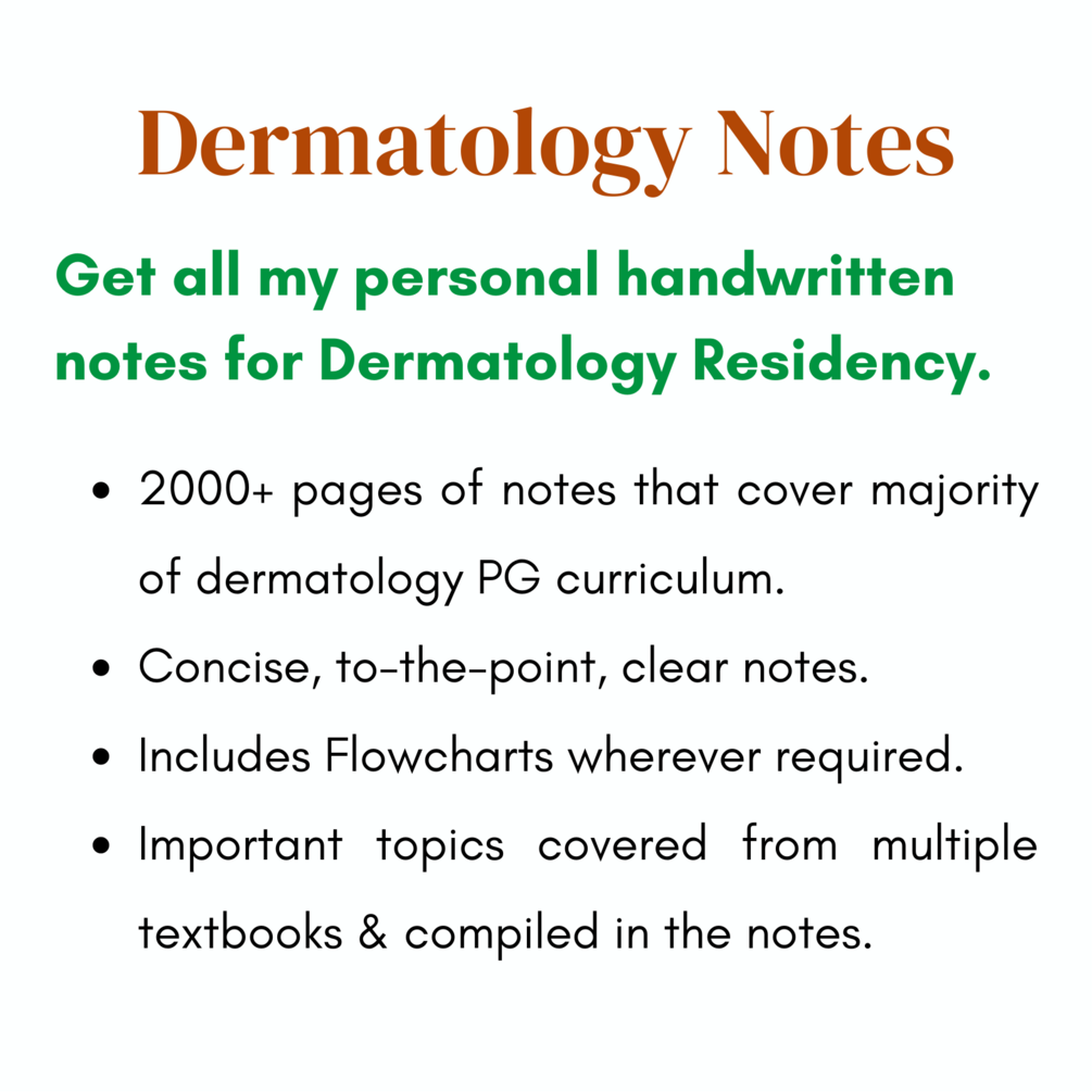 Get my personal handwritten notes for Dermatology Residency.
